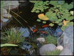 Goldfish at feeding time. The new fish grew pretty quick. (The old ones met