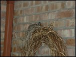 A momma robin built her nest on the grapevine wreath